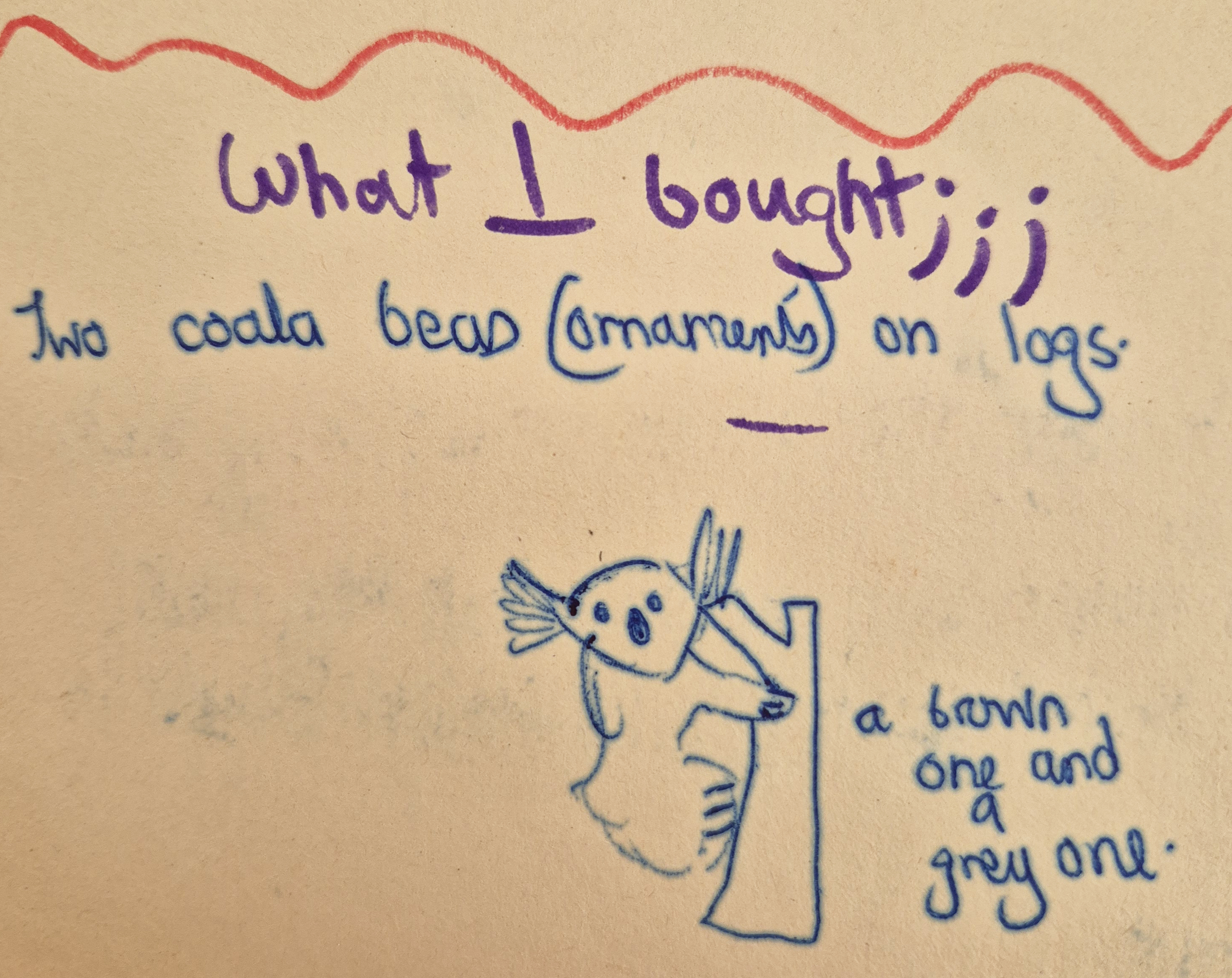 I documented each day's activities as well as drawing the wallpaper in our room.